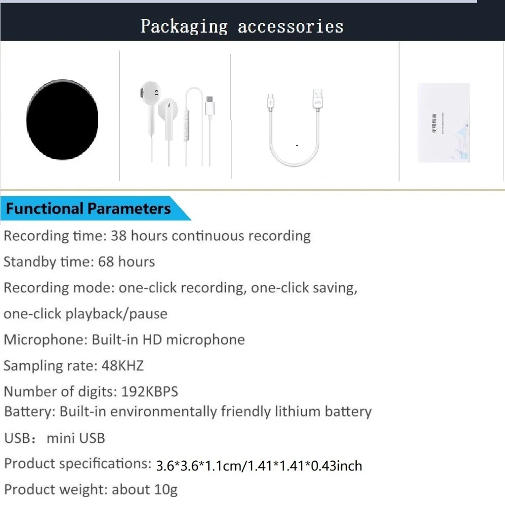 HIFI MP3 music, fully charged in 30 minutes, continuous recording for 38 hours.