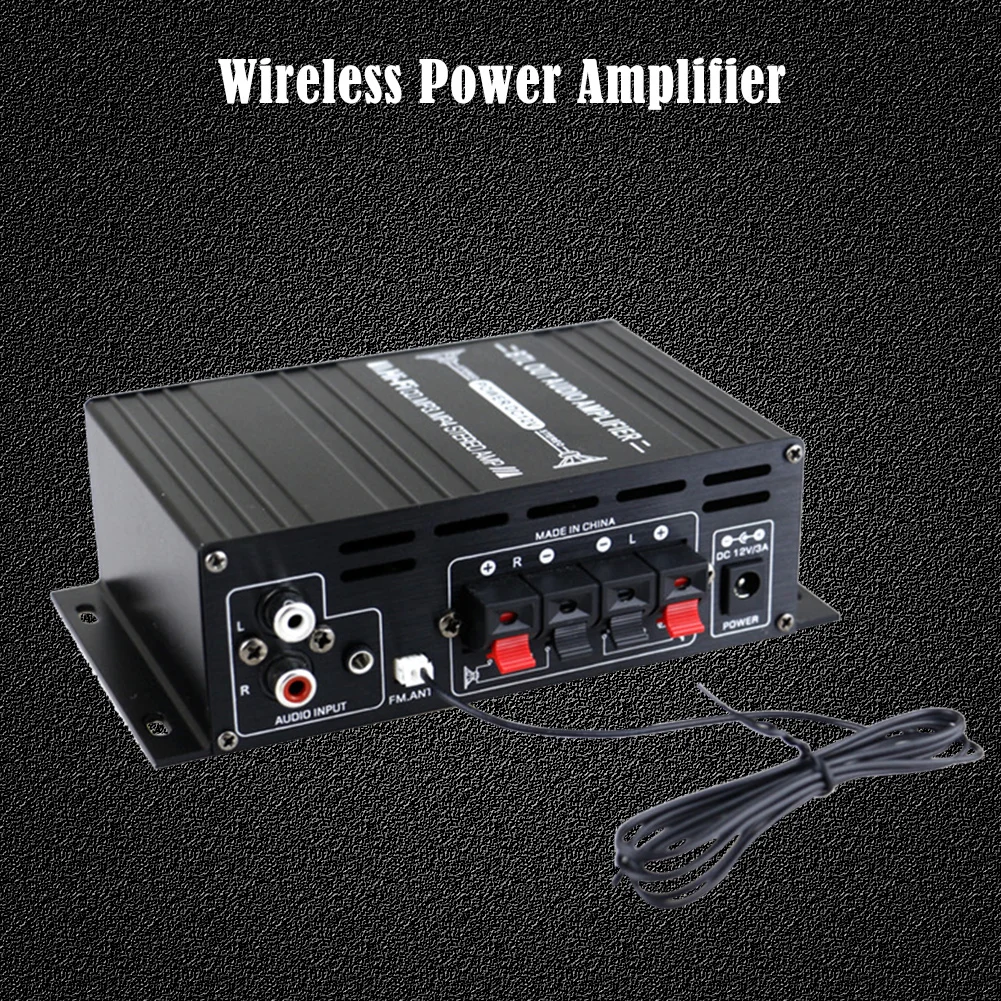 AK380 Bluetooth-Compatible Audio Amplifier 2 Channel Digital Subwoofer Amplifiers Karaoke Home Theater HIFI Bass 40W+40W Music Player USB AUX Karaoke for Home CarFeature: 1. Connect multiple devices:The power amplifier can be connected to mobile phones, computers, tablets, laptops, MP3s, televisions and projectors with A audio (lotus socket) or 3.5m headphone output holes. All kinds of mobile phones on the market can be connected via Bluetooth-compatible to realize wireless playback.TF card, AUX, U disk, MP3 format playback, support Bluetooth-compatible wireless connection. 2. Compact and Portable:Mini HIFI digital Bluetooth-compatible audio power amplifier. 3. Support FM stereo radio: the audio power amplifier is support FM stereo radio.And with remote control function. 4. Rated power: 40W+40W. With treble, bass and volume control, it is very easy to use. 5. Suitable For:DC/AC power input, suitable for home or car.Low distortion provides clearer, stronger, and more powerful sound. Specification: Maximum Power Per Channel: 40W Model Number: Audio Amplifier Channels: 2 (2.0) Name: HiFi Bluetooth-compatible power amplifier Color: black Material: aluminum alloy Rated voltage: 12V (not included) Rated power: 40W+40W Rated frequency: 20-20KHz Resolution: 47K Distortion rate: 0.1% Signal to noise ratio: 90dB Impedance: 4-16 Ω Channel: 2.0 Bluetooth-compatible protocol: 5.0 Bluetooth-compatible distance: about 10m (barrier free) Receiving mode: audio input Amplifier type: HIFI amplifier Audio input: RCA stereo audio, Secure Digital card, U disk, USB audio input can be connected to computer/mobile phone/OTG/tablet 0TG Product size: 155x85x45mm/6.1inx3.3inx1.7in Note: