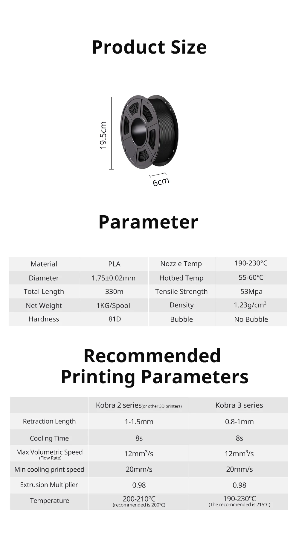 ANYCUBIC 5KG PLA Filament For FDM 3D Printer 1.75mm Eco-friendly 3D Printing Material Failment For Kobra S1C K3C EU US Warehouse