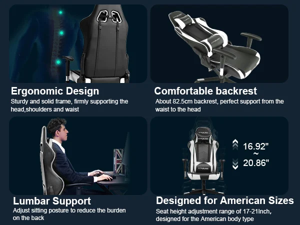 The ergonomic design ensures a neutral, balanced posture, relieving pressure and minimizing discomfort. Say goodbye to aches and pains while gaming!<br>