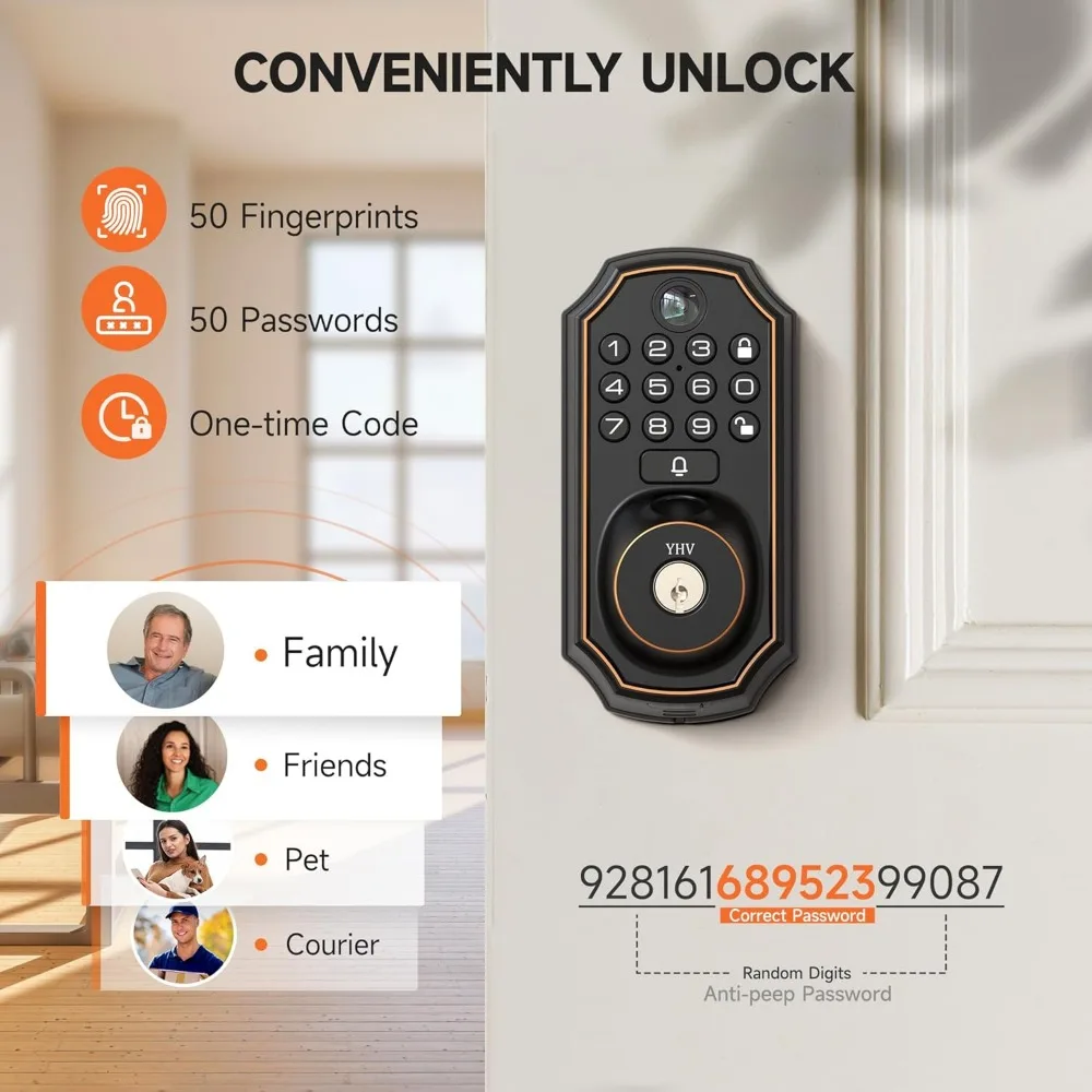 - Multiple Ways to Unlock: This keypad deadbolt can store up to 50 unique fingerprints and passwords, providing a swift and secure entry method and ensuring that only those with authorization can access your home. Even offline, temporary passwords can be generated for easy sharing with guests or service providers