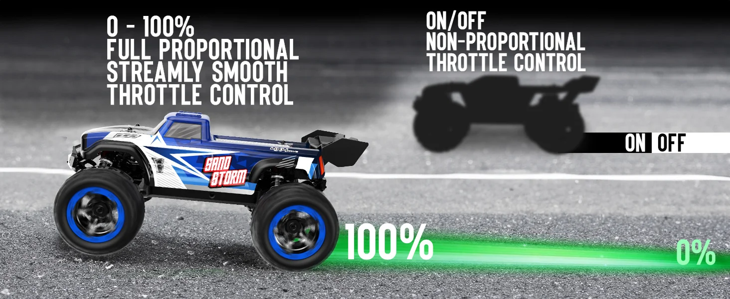 [High Speed RC Truck for All Terrain] To provide you a genuine racing and off-road game experience, this remote-control truck is built with durable, strong and powerful components. With a powerful 390A motor, it can run at a high speed of up to 30 MPH.