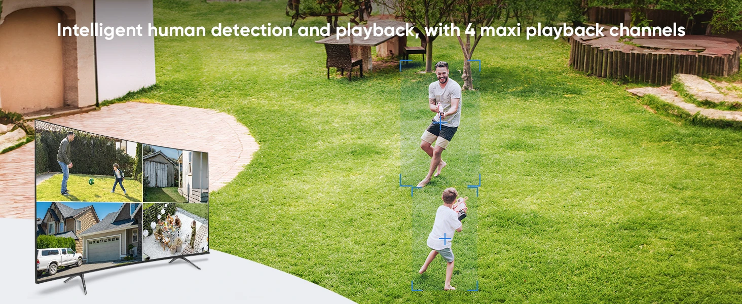 Supports humanoid detection, humanoid picture frame, humanoid intelligent playback, APP and Email mobile alarm push, and Email alarm with screenshots