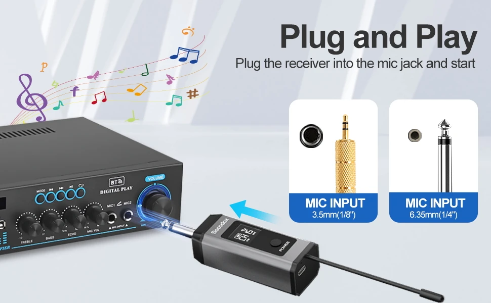 Supports stable wireless connection with a transmission range of up to 160 feet, Perfect for home karaoke, meeting, party, church, DJ, wedding, and more