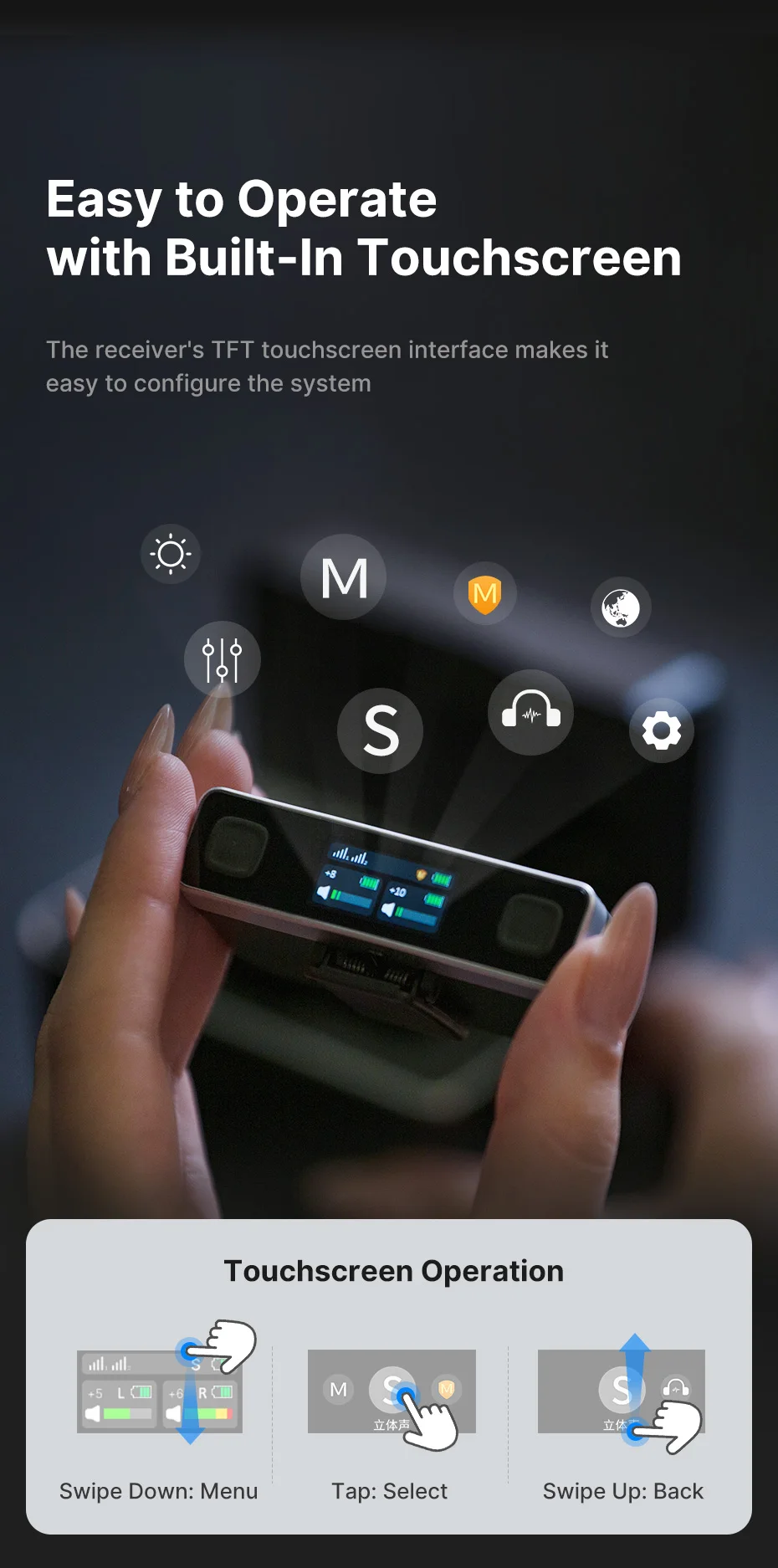 3.Up to 20 Hours Battery Life: The ultra-portable charging case is the perfect home for U-Mic. With it, you can charge the transmitters and receiver, conveniently store components, and fast-pair the system right out of the case.
