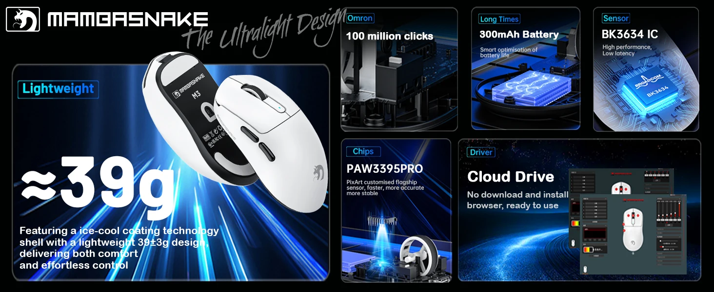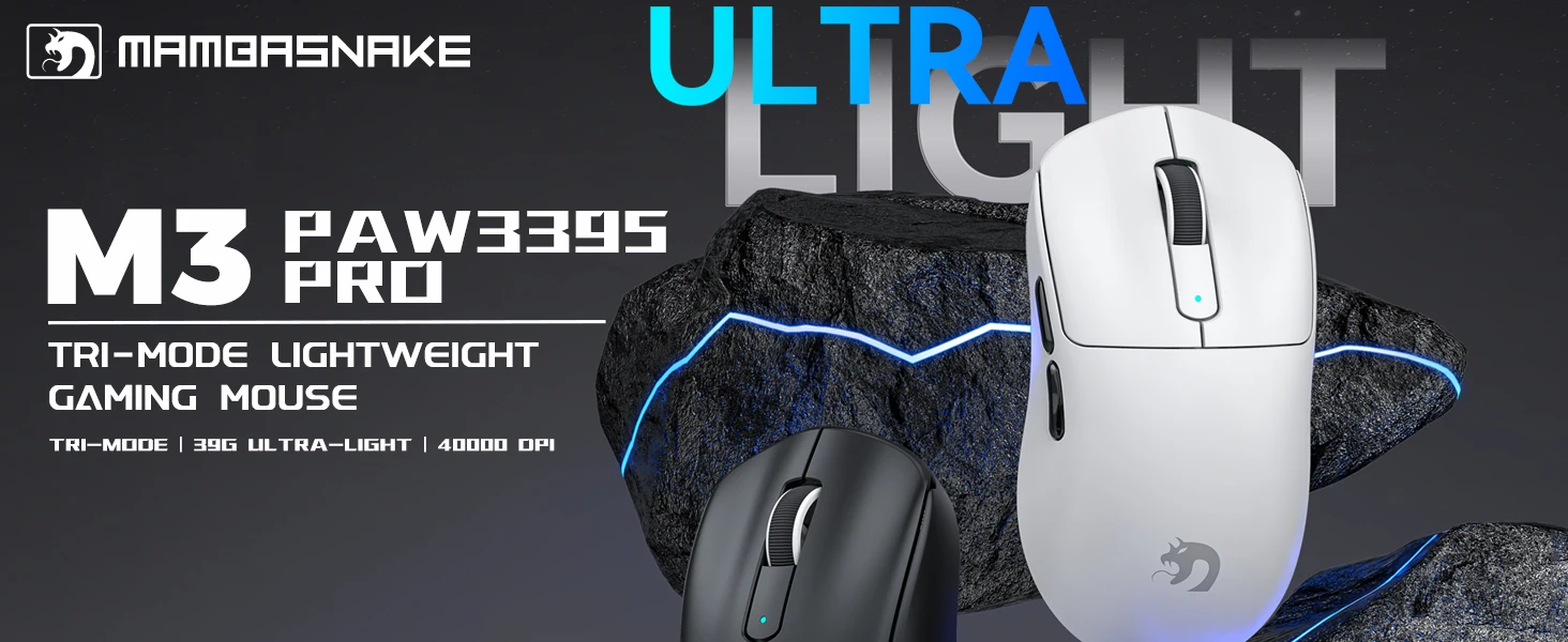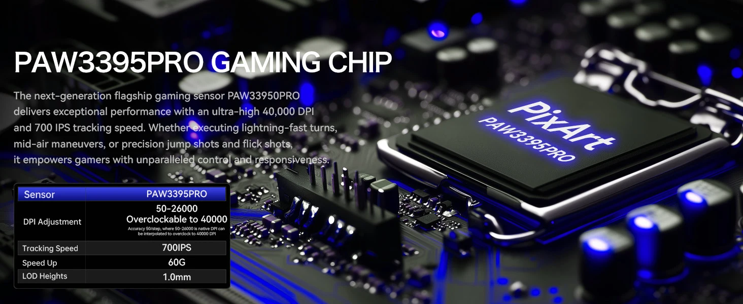 Wireless Gaming Mouse with Lightweight 39g, Pix Art PAW3395 PRO Sensor 40K DPI, Tri Mode-,100M Clicks Micro Switch